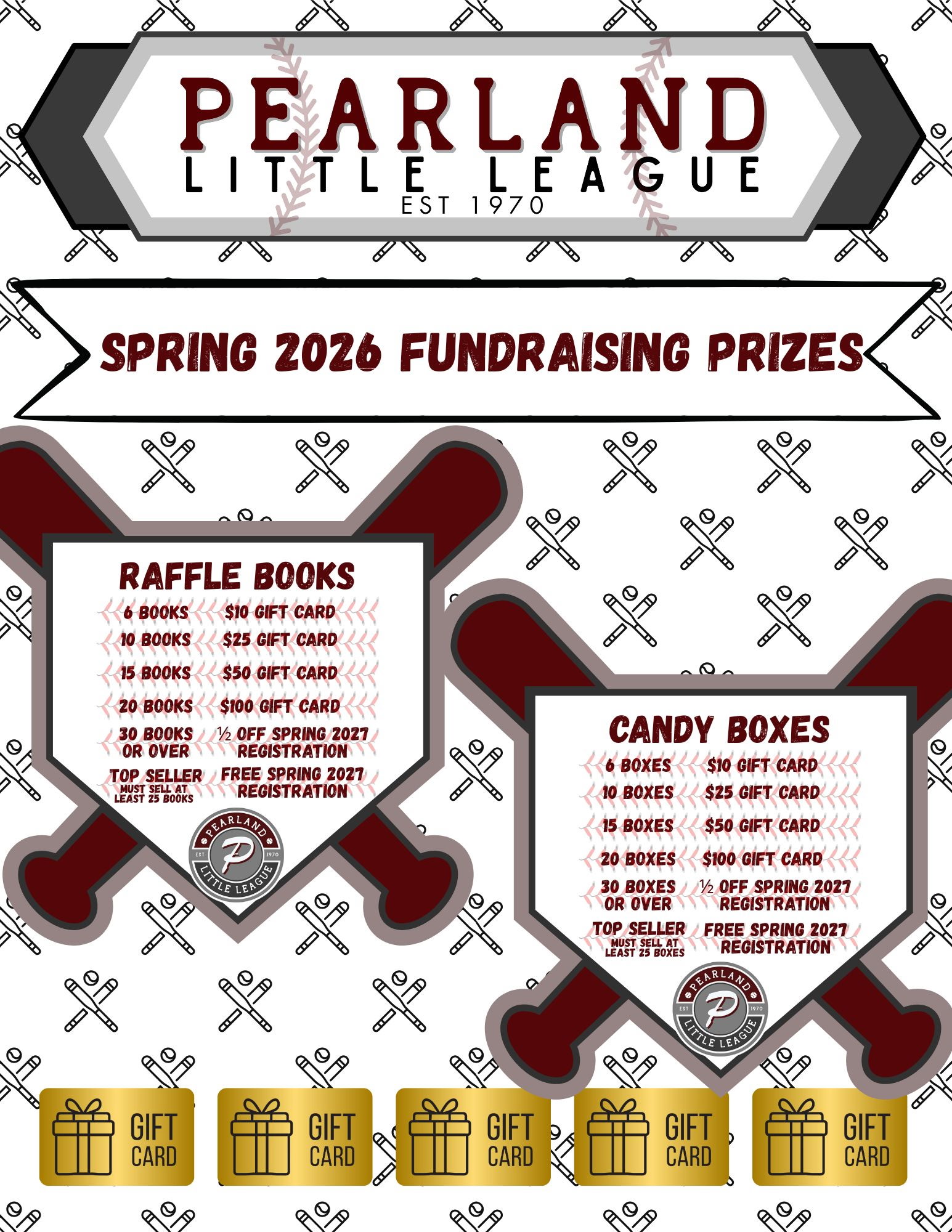 Every spring season we ask all of the players participating at Pearland Little League to help raise additional funds to pay for the league to operate. PLL is 100% responsible for all maintenance to our fields, buildings, and equipment at the Dads Club facility. The additional funding selling Raffle tickets and Candy provides allows the league to continually upgrade the facility keeping it as one of the top LL parks in the greater Houston area.